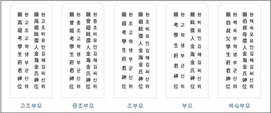 4. 끝에는 반드시 ~의 자리라는 뜻을 가진 之位(지위) 또는 神位(신위)로 마무리한다.