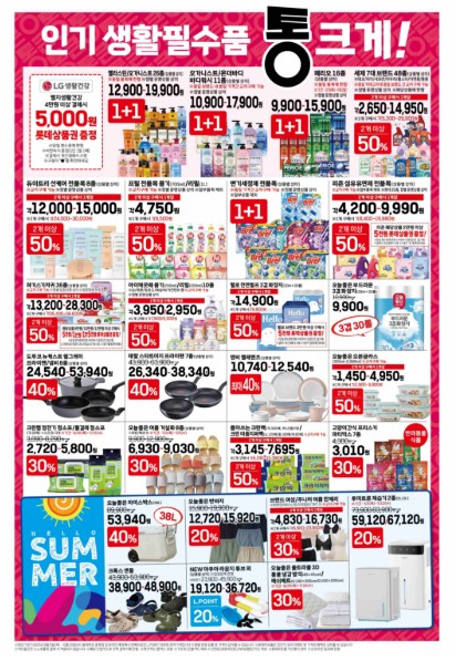 롯데마트 전단행사는 6월 26일(목)부터 7월 9일(수)까지 약 2주간 진행된다. 특히 이번 행사는 상반기 결산 의미가 담긴 통큰세일인만큼 주말뿐 아니라 평일 방문 시에도 다양한 특가 상품을 만날 수 있다. 냉장식품, 채소류, 고기, 수산 등 신선식품 할인은 물론이고 청소용품이나 주방. 생활잡화까지 할인 폭이 커서 가족 단위 소비자에게 특히 인기가 높다.
