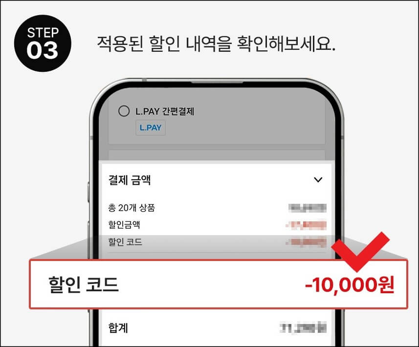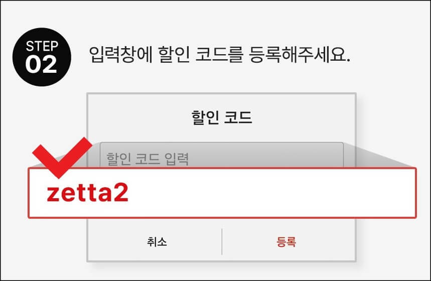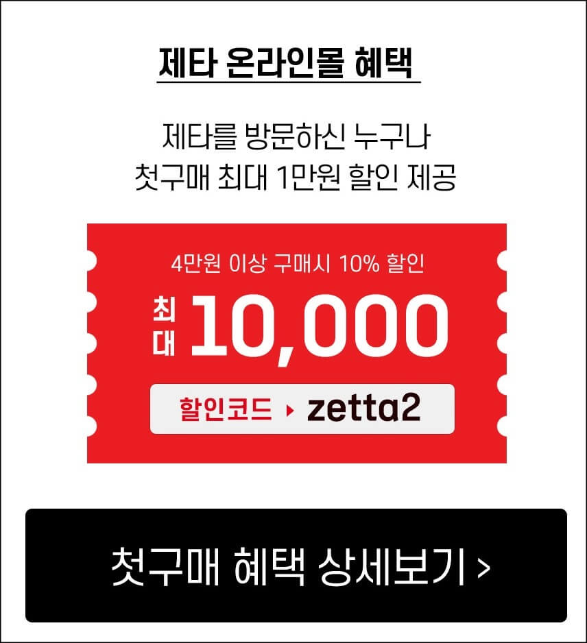 제타 앱을 통해 온라인 쇼핑을 했다면 쇼핑 후 결제 마지막 단계의 할인정보에서 할인코드를 선택한 뒤 zetta2 할인코드를 등록만 해주면 자동으로 1만원 할인이 적용된다. (4만 원 이상 구매 시 ID당 1회 사용 가능)