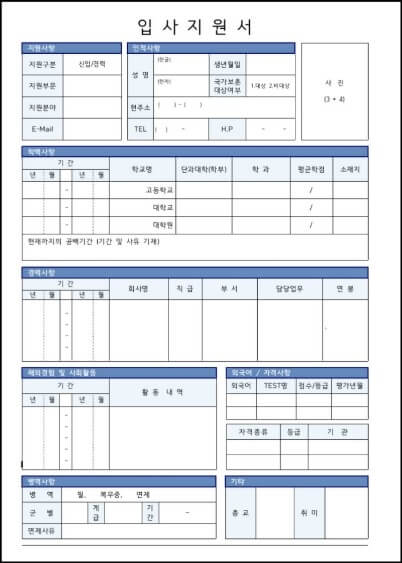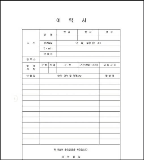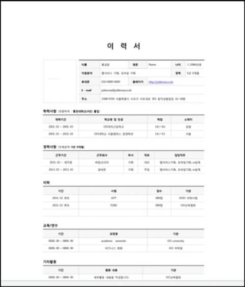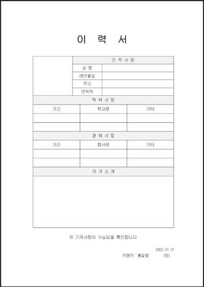 이력서 양식에는 인적사항과 학력사항, 경력사항들을 필수로 입력해야하기 때문에 무료 이력서 양식들은 기본적으로 이러한 사항들을 입력할 수 있게끔 만들어져 있다.