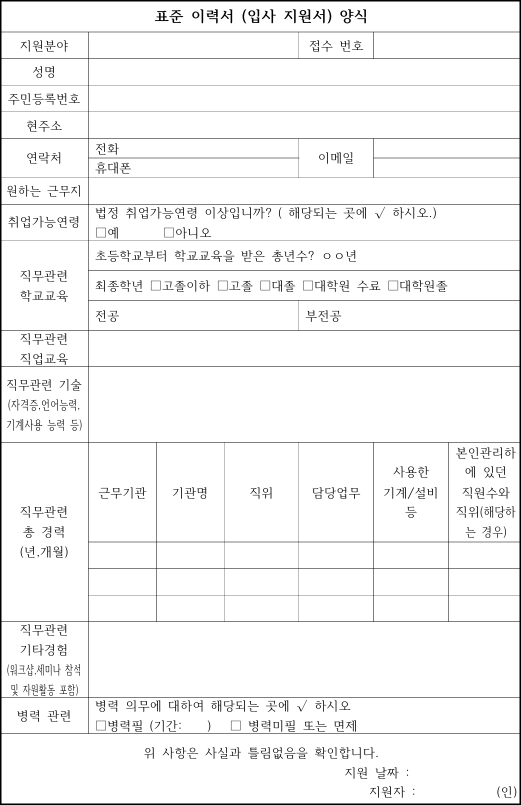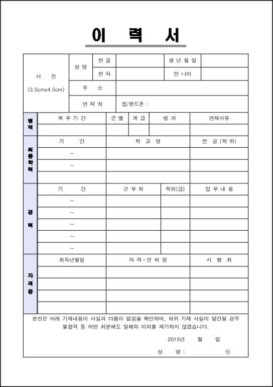 이력서 양식 무료 다운