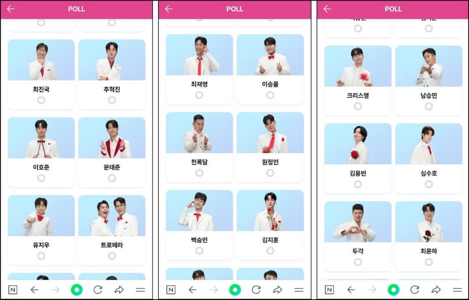 1월 10일부터 시작되었던 미스터 트롯3 투표하기는 3월 14일까지 진행된다. 하나의 ID당 1일 1투표가 가능하며 한번 투표할 때 필수로 7명을 선택하여 투표하면 되는데 아마도 회차수가 거듭될수록 참가자가 적어지고, 투표할 수 있는 인원도 줄어들게 될 것이다.