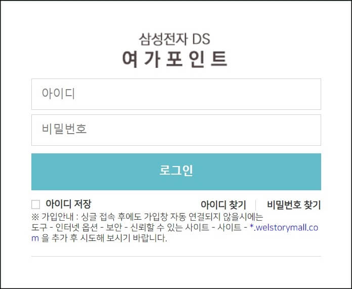 오늘 공유하는 삼성 DS 여가포인트 주소로 접속하면 아이디와 비밀번호 입력후 사용하면 되는데 보통  ID는 회사에서 사용하고 있는 사 번으로 통용되어 있는 것으로 알고 있다. 필자의 가족구성원 중에는 디스플레이에 다니는 사람 두 명, 반도체에 다니는 사람 한 명이 있는데 가전제품을 살 때 사용하거나 여행 및 숙박으로 사용하기도 하지만 생필품들도 있어서 생필품을 구매하는 데에도 꽤 쏠쏠하게 사용하고 있다.