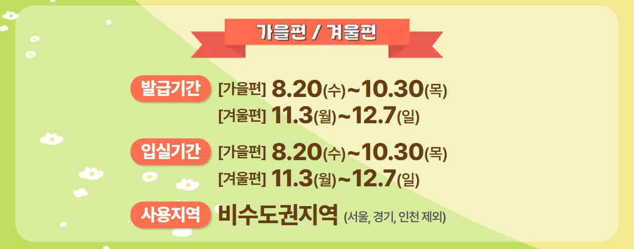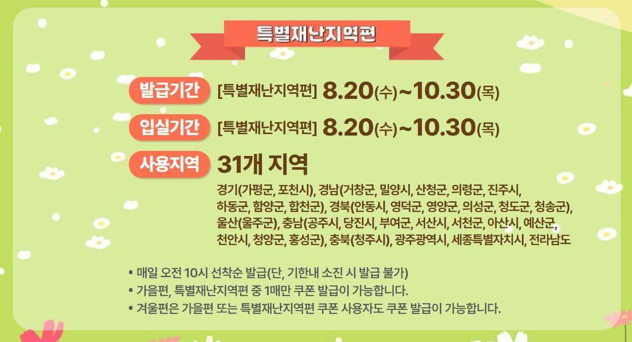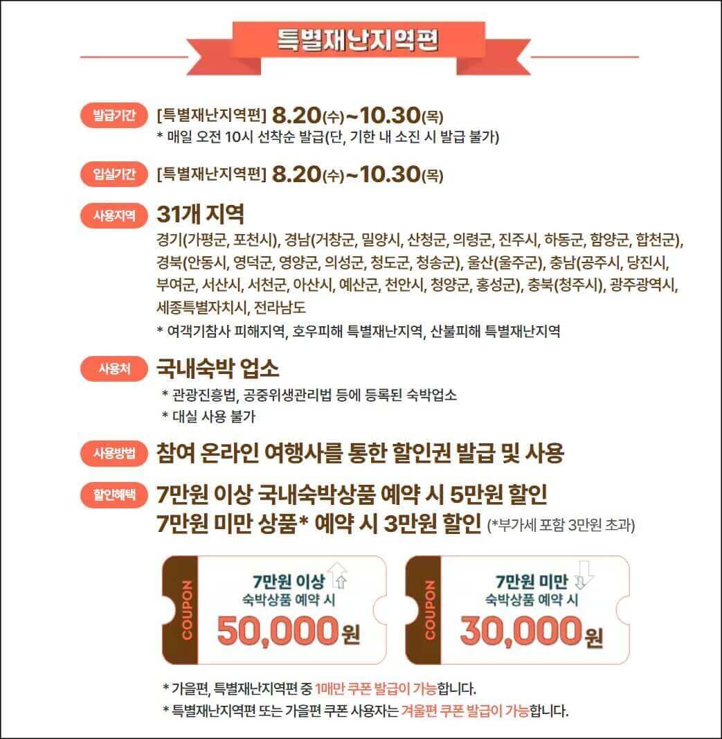 | 특별재난지역 | 5만원 할인 쿠폰 & 3만원 할인 쿠폰 |