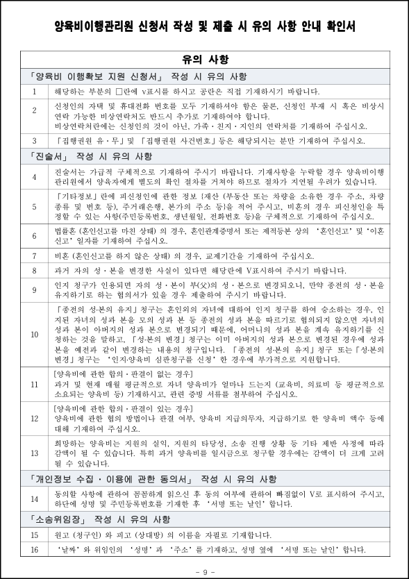 또, 양육비 선지급제 신청을 하기 위해서 필수로 첨부해야 하는 서식이 있는데 직접 다운로드해서 사용해야 하는 서식이 있는 만큼 필수 서류 목록을 확인해 보는 것도 중요하다.