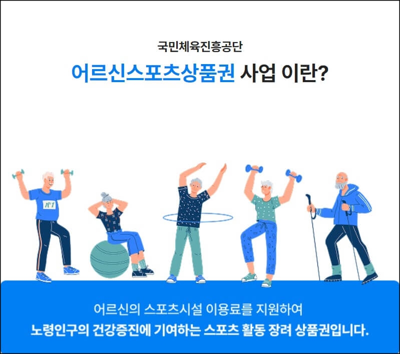 어르신스포츠상품권은 국민체육진흥공단이 추진하는 복지형 스포츠 이용지원 사업이다. 65세 이상 기초연금 수급자를 대상으로 제로페이 모바일 상품권을 제공해 지역 내 스포츠 시설 이용을 촉진하는 목적을 갖고 있다. 상품권은 1인당 5만원씩 최대 3회 즉, 최대 15만원까지 지원되며 단순한 금전 지원이 아닌 건강과 여가를 위한 실질적인 혜택을 제공하는 정책이라고 생각하면 된다.