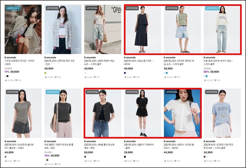 삼성물산에 속해있는 한국 브랜드 에잇 세컨즈는 SSF샵에서 최대 80%의 데일리 랜덤 쿠폰과 20% 선착순 쿠폰을 증정하고 있는 데다 해당 쿠폰은 에잇 세컨즈뿐만 아니라 SSF샵에 입점 되어있는 모든 브랜드에서 사용할 수 있으니까 쇼핑 전 꼭 할인 쿠폰 먼저 챙기는 게 좋다.
