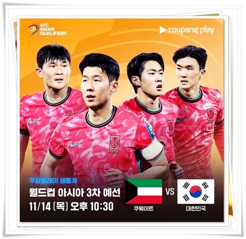 한국 축구 대표팀은 11월에 A매치 두경기를 앞두고 있다. 14일 오후 11시에는 쿠웨이트전 경기가 진행되고, 19일인 오후 11시에는 팔레스타이전 경기가 진행된다. 그리고 두 경기 모두 ott 스트리밍은 쿠팡 플레이에서 독점으로 중계되고, 쿠웨이트전은 SBS에서 중계되며 팔레스타인전은 KBS2 채널에서 중계된다.