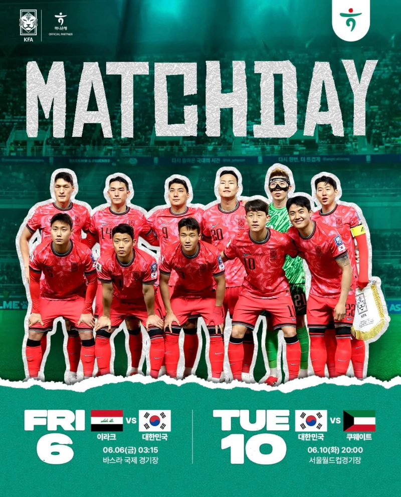 이렇게 이라크와의 원정경기를 마친 후 한국은 6월 10일(화) 오후 8시에 쿠웨이트와 홈경기를 치른다. 이 경기 또한 2026 북중미 월드컵 아시아 3차 예선 9차전 경기로 이라크전 경기에 따라서 월드컵 본선 진출을 확정하게 될 수 있는 경기가 될 것 같다. 쿠웨이트전은 MBC 채널과 쿠팡 플레이에서 생중계되니 참고하자.