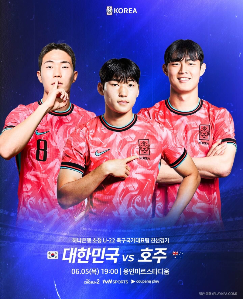 2025년 6월 5일(목) 오후 7시, 용인 미르스타디움에서 U-22 대한민국 대표팀이 호주와 친성 경기를 치른다. 이 경기는 AFC U-23 아시안컵을 앞두고 열리는 평가전으로 오는 대회를 위한 전술 점검과 선수 기량 확인을 위한 중요한 기회이기도 하다. 호주는 아시아 무대에서 꾸준한 실력을 보여주는 강팀 중 하나로 유소년 육성과 피지컬 면에서 강점이 있는 팀이고, 한국 역시 황선홍호 시절부터 쌓아온 조직력을 바탕으로 이번 경기에서 경쟁력을 점검할 계획이다.