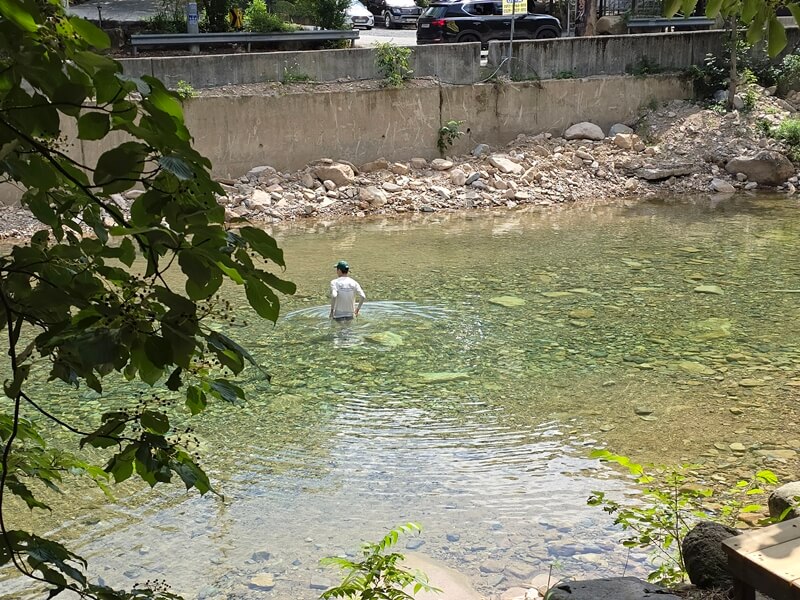 물은 검태오남매 블루라군 계곡보다 훨씬 깨끗했고, 멀리서 봤을 때는 되게 얕을 거라고 생각했지만 키 160 성인 기준으로 허리까지는 오는 깊이 었어서 중고딩 조카들과 함께 놀기에 딱 좋았다.