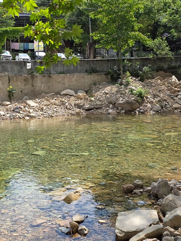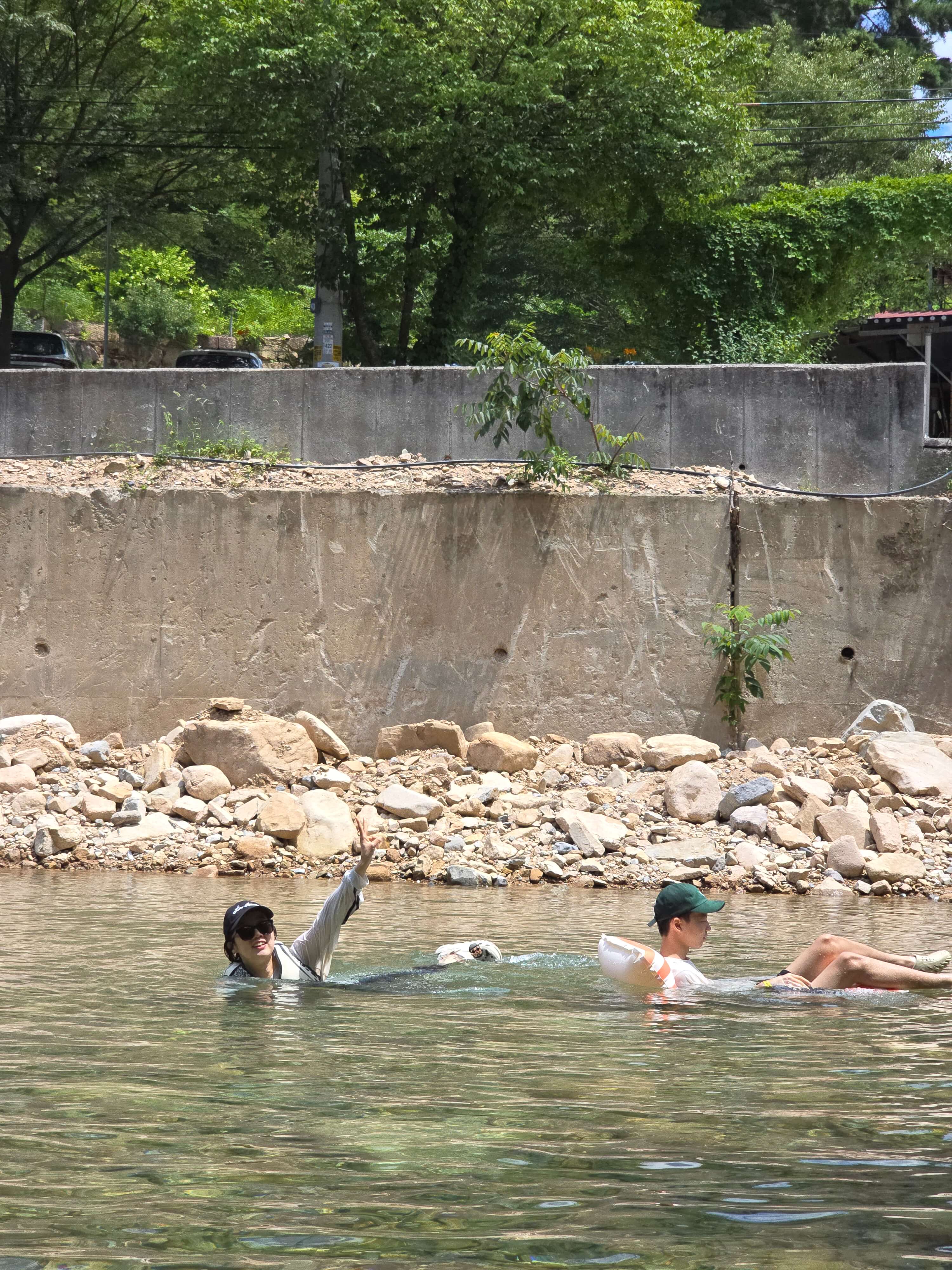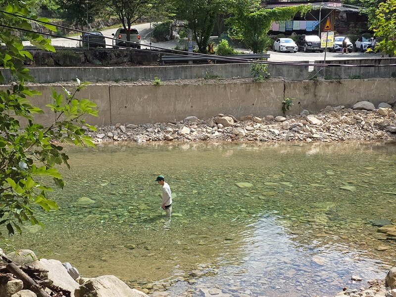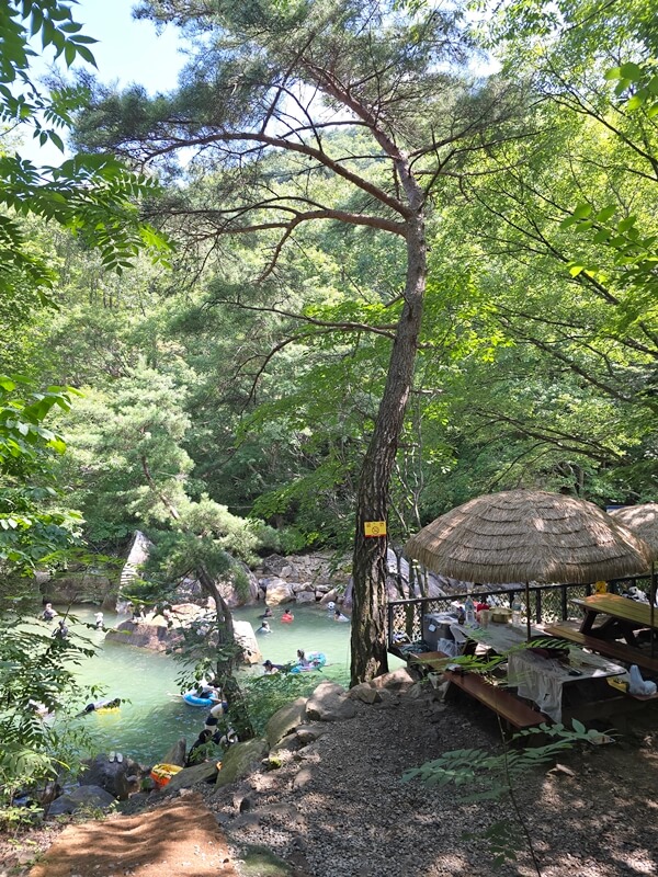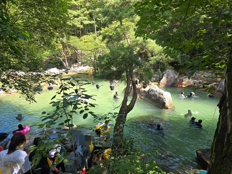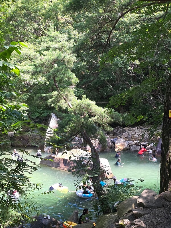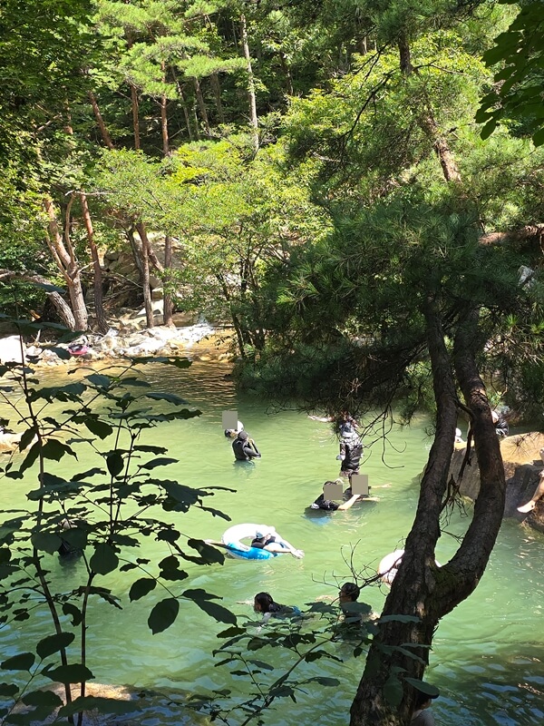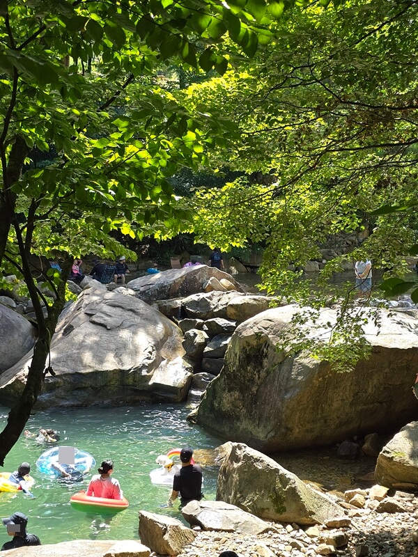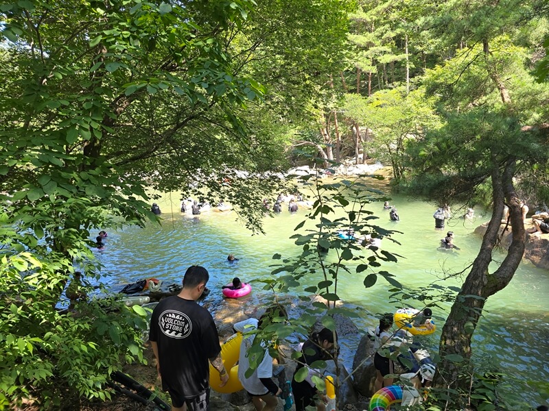 평소에는 물이 굉장히 맑지만 사람들이 많아서 그런지 물 색이 옥빛에 가까웠고, 큰돌들을 기준으로 수심에 차이가 있는 계곡들이 계단식으로 나누어져 있었다. 아무래도 수심이 깊고 SNS에서도 유명한 곳이다 보니 젊은 친구들이 엄~청 많았다.
