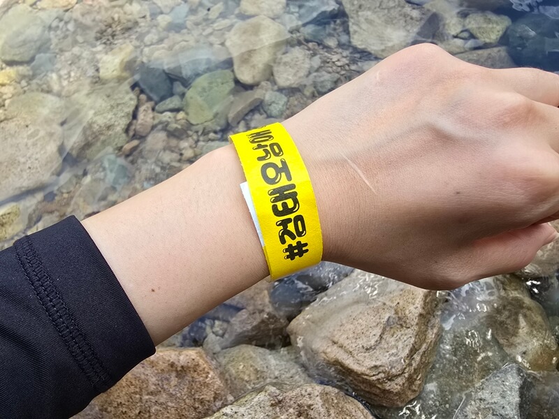 게다가 블루라군이라고 불리는 계곡 근처로는 비어있는 평상이 없었기 때문에 우리에게는 다른 곳으로 아예 이동을 하거나 해야 했으나 직원분께서 아주 조금 더 위로 올라가면 있는 검태오남매2로 안내해 주셨고, 평상 대여 결제를 하고 나니 손목띠를 나눠주셨다. (검태오남매에 방문하는 사람들은 다 둘러야 함) 아무래도 이쪽은 가든(음식점)이었던 것 같은데 검태오남매에서 확장한 것 같았다.
