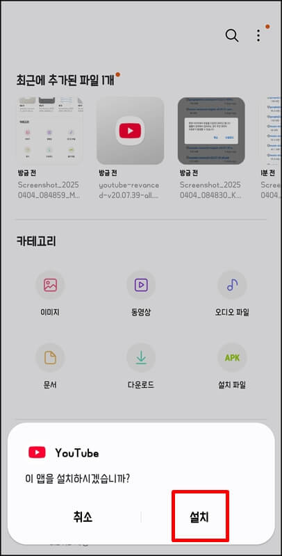 그럼 이렇게 핸드폰에 유튜브 리밴스드 앱과 microg settings 앱이 설치되어있는것을 확인할수 있다.
