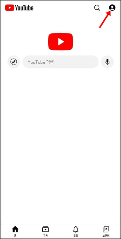 그럼 이제 조금 전에 설치한 유튜브 앱을 실행해 보자. 실행하면 완전 처음으로 유튜브를 이용하는 것처럼 알림 팝업들이 떠있고, 영상이 재생되는 부분은 백지상태일 것이니 내가 구독하고 있는 계정들을 그대로 이용하려면 오른쪽 상단에있는 프로필 사진을 누르고 로그인을 진행하면 된다.