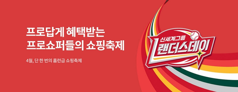 프로야구 개막 시즌에 맞춰서 신세계그룹에서는 랜더스데이 행사를 시작했어요. 이마트 할인행사뿐만 아니라 모든 신세계 그룹이 4월 1일 ~ 7일까지 랜더스데이 행사를 진행하는데요~ 이중에서