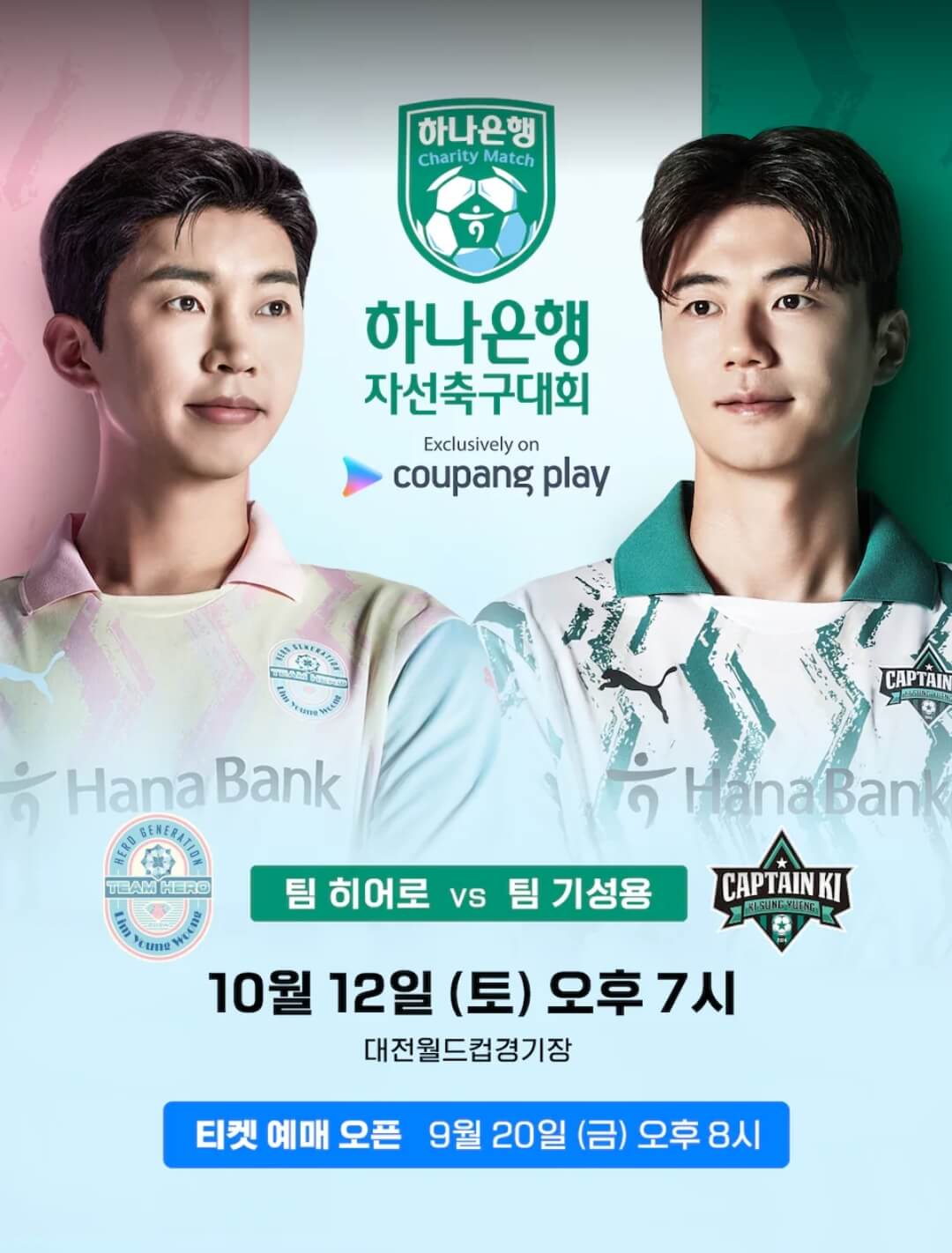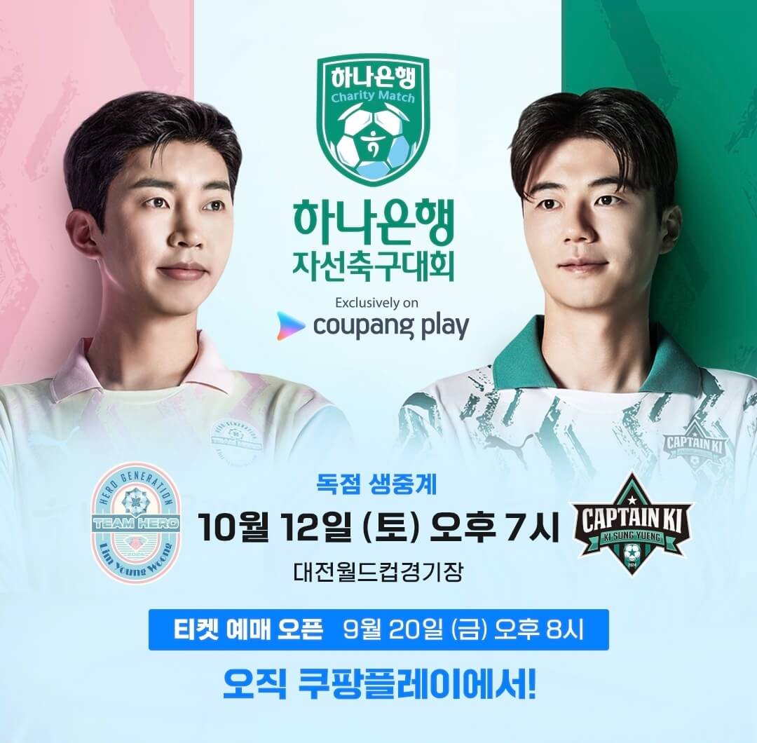 임영웅 하나은행 자선축구 대회는 24년 10월 12일(토) 오후 7시에 대전월드컵 경기장에서 진행되고 가수 임영웅이 직접 팀을 꾸려 녹색 그라운드 위에 올라 선수로 출격한다.