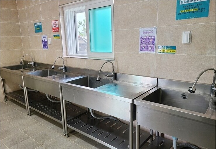 그리고 또 하나 좋았던 건 구역별로 나누어서 화장실, 샤워장, 조리실이 마련되어 있다. 조리실에는 개수대만 있고, 아무래도 장호비치 캠핑장은 장작 사용이 불가능하기 때문에 화로대 수전도 없으니 참고하자. 화장실과 세면대는 수시로 청소하고 채워주기 때문에 캠핑장을 이용하는 내내 깨끗하게 사용할 수 있다는 점도 꽤 좋다.