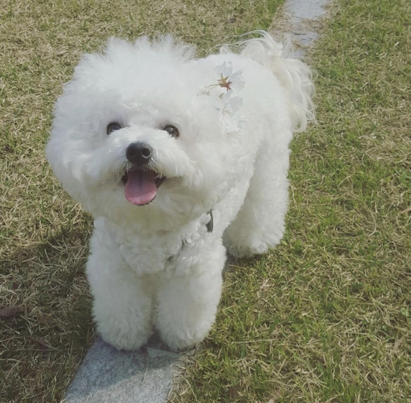 이번 챗지피티 지브리 스타일은 우리 집 반려견으로 해봤다. 사진만 올리고 지브리 스타일이라고만 입력했음에도 머리에 꽂은 벚꽃과 털에 가려져 잘 보이지 않는 가슴줄(하네스)까지 디테일하게 그려줬다. 역시나 노란끼가 많이 들어갔다.
