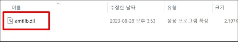 압축이 해제되면 amtlib.dll이라는 파일이 하나 있는데 이 파일을 복사해서 아래의 경로를 따라가 붙여 넣기 해준다.