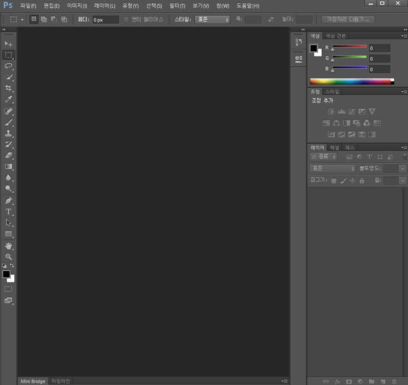 그렇게 크랙까지 진행하고 포토샵 cs6를 실행하면 시험버전이라는 문구 없이 사용이 가능하다.