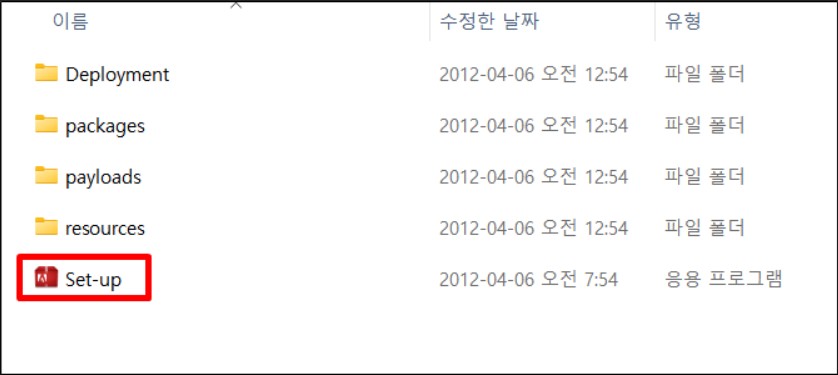 다운로드한 포토샵 cs6 파일을 실행하여 압축을 풀고 첫 번째에 있는 Adobe CS6 > Set-up 순으로 클릭하면서 본격적인 포토샵 cs6 무료설치를 시작한다.