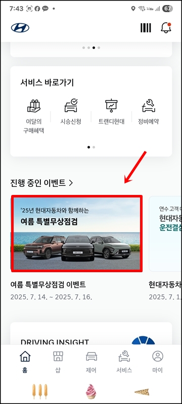 현대 자동차 무상점검 쿠폰은 상시 다운받을수 있는 게 아닌 7월 16일(수)인 오늘까지만 가능하며 선착순이기 때문에 쿠폰이 소진되면 종료되니까 빠르게 서둘러야 한다.