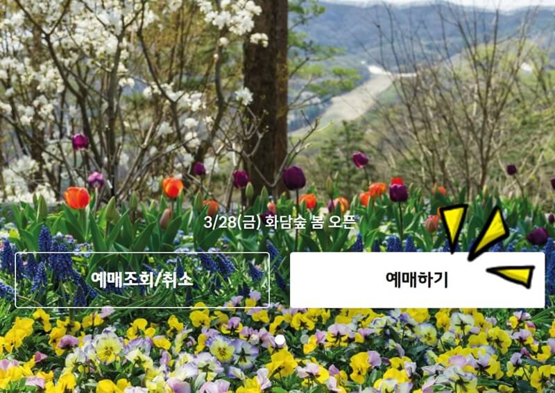 이제 화담숲 예약방법 알아보자. 올해는 벚꽃시즌을 앞두고 화담숲과 야놀자가 뭉쳤다. 그렇기 때문에 공식 홈페이지에서 화담숲 입장권 모노레일 예약하기를 하더라도 예매 플랫폼인 야놀자에 미리 회원가입해 놓고 오픈시간 5분 전부터 로그인해 놓는 것이 좋다.