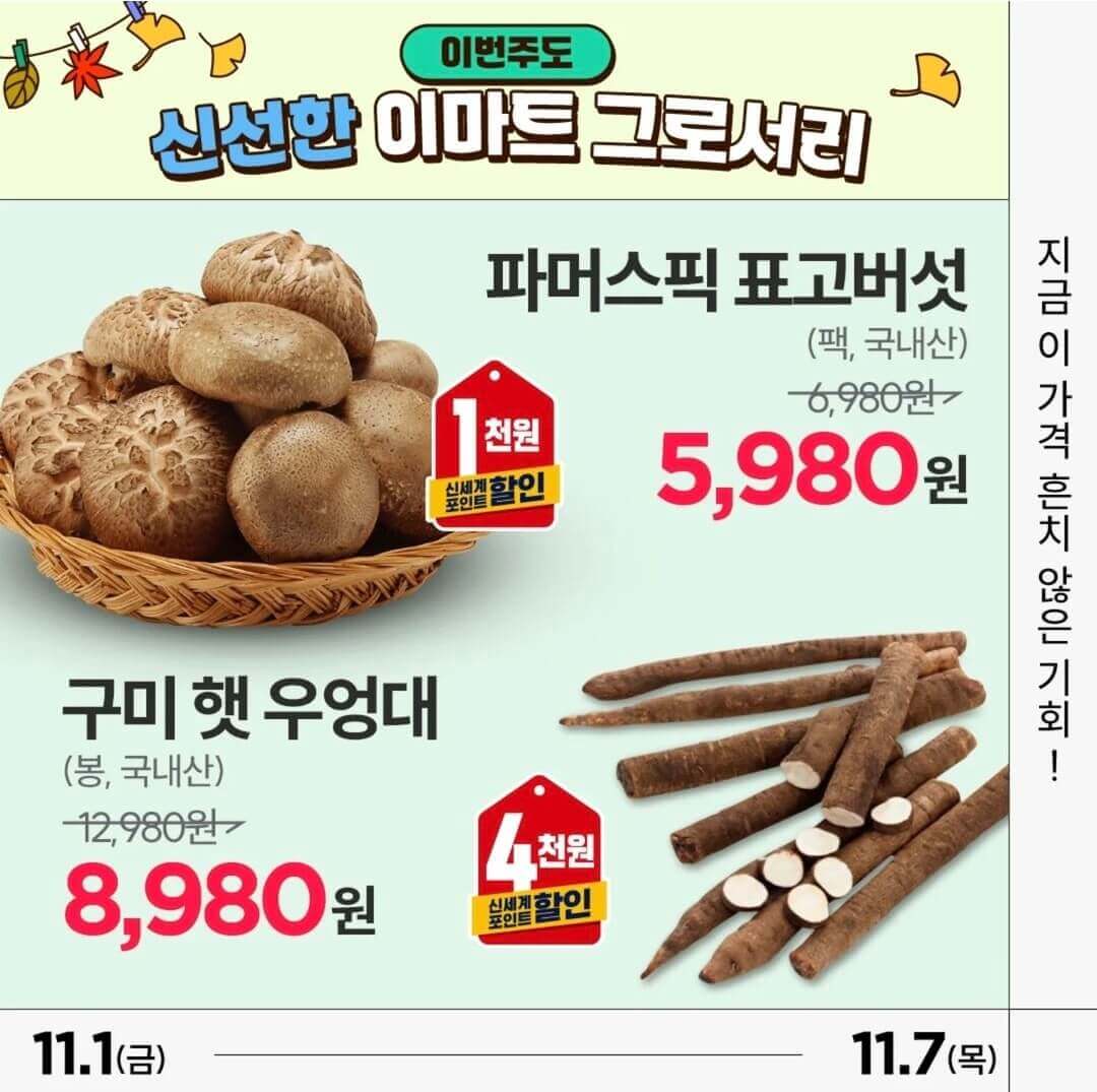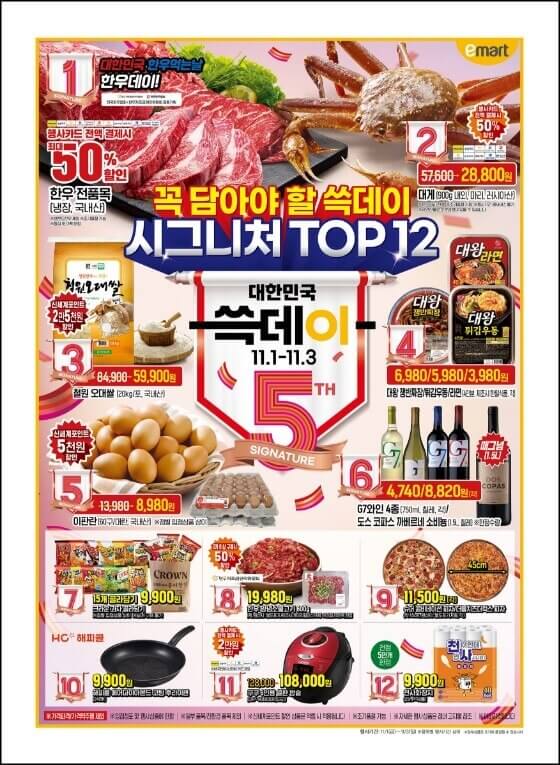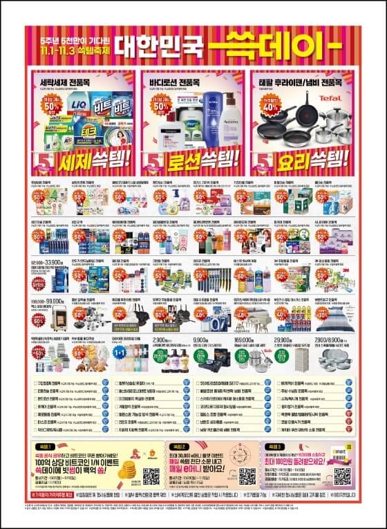 오늘부터 대한민국 쇼핑 축제인 쓱데이가 막을 올린다. 11월 1일인 오늘부터 시작되는 쓱데이는 역대 최장인 열흘동안 진행되는데 그 스타트는 이마트가 가장 먼저 시작하여 특가 할인을 펼친다. 단 3일 동안 누릴 수 있는 2024 이마트 쓱데이 전단지와 이마트 쓱데이 행사카드는 어떤 것들이 있는지 알아보도록 하자.