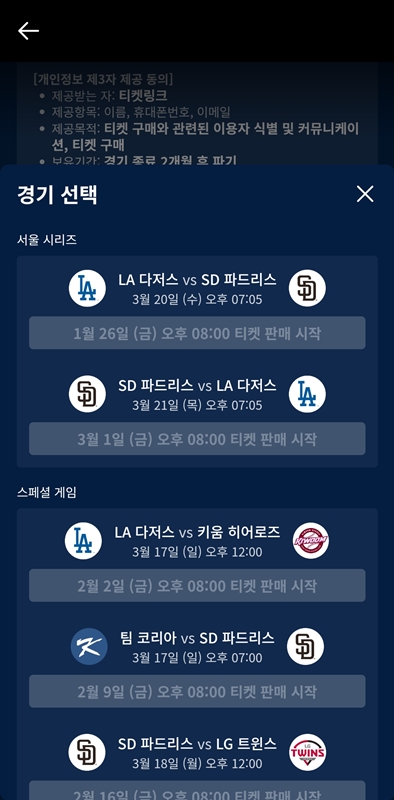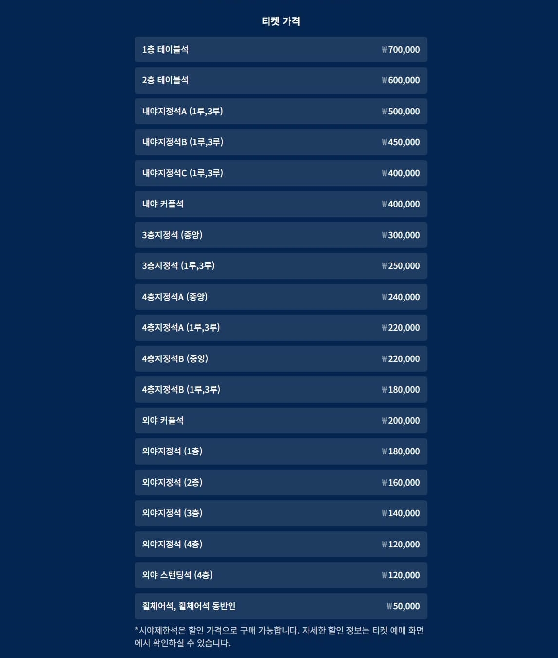 그에 반해 스페셜 게임의 티켓 예매 가격은 mlb 개막전 티켓 가격의 반값인걸 볼수있다. 물론 이 스페셜 게임 가격도 썩 저렴한 편은 아니지만 mlb의 개막전에 비하면 정말 착한 가격은 맞는 것 같다.