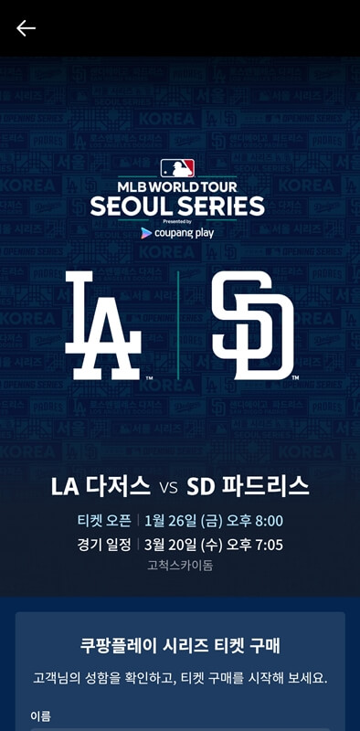 이번 서울 시리즈 티켓 예매는 쿠팡 플레이에서 독점으로 오픈하는 만큼 쿠팡 플레이 인스타와 mlb 공식 인스타에서 일정에 대한 소식을 가장 빠르게 받아볼수있다. 혹시 모를 일정 변동 또한 마찬가지이니 참고하도록 하자.